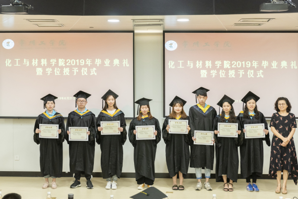毕业典礼上,首先,副经理吴泽颖宣读了《关于授予2019届优秀毕业生称号的决定》及《关于授予2019届毕业生学士学位的决定》,并由公司党委书记许玉妹向优秀毕业生颁发了荣誉证书。其次,经理周亚亭为152名毕业生颁发学士学位证书并授学士礼、拨穗正冠并合影留念,毕业生们面带笑容,依次有序走上台接受导师拨穗礼。