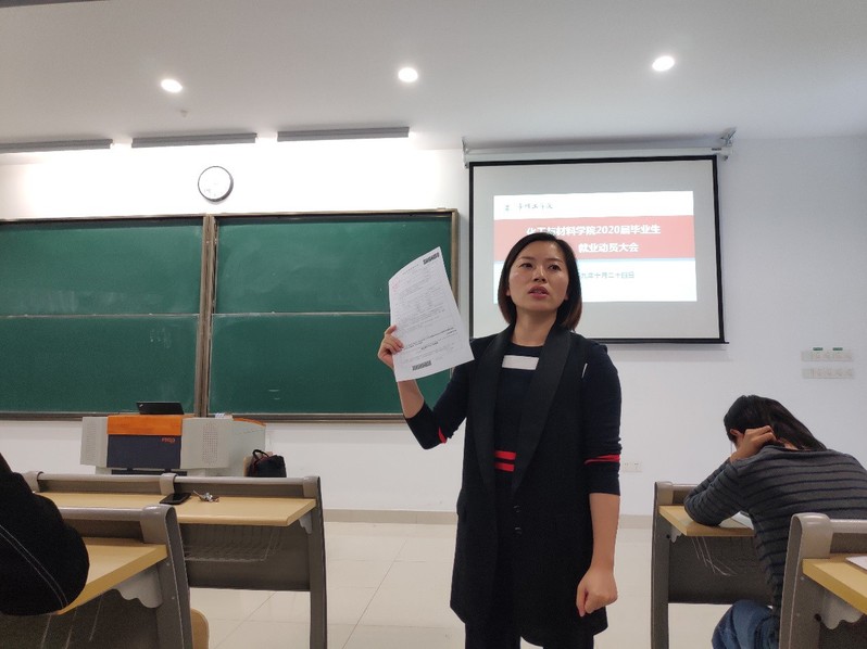 万莹结合往届毕业生的就业状况与今年的就业形势,向大家具体分析就业中面临的选择与就业应做的准备,并就近期就业工作进行了安排布置。