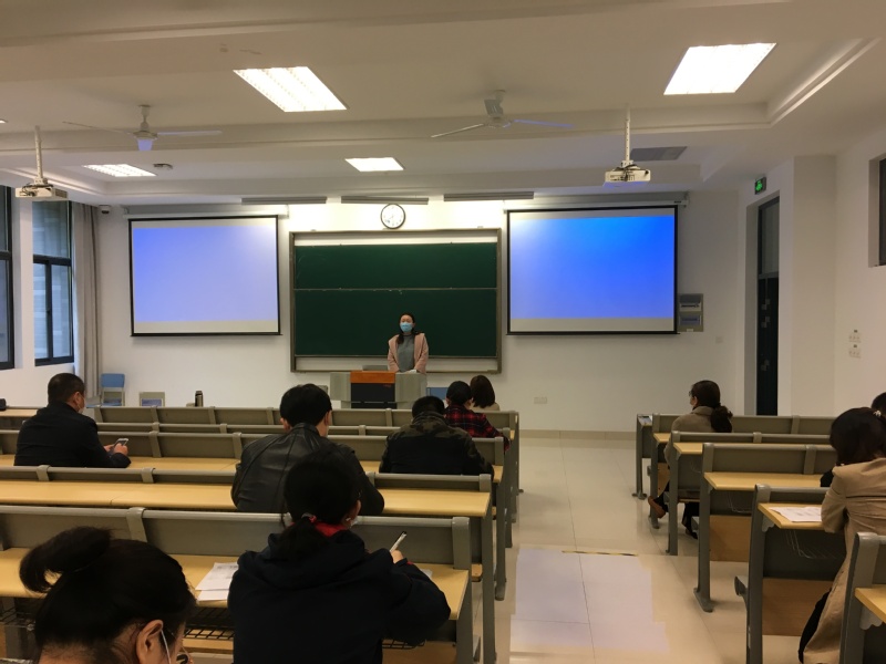 4月22日下午,DB真人旗舰召开本学期第一次教职工大会。按照疫情防控要求,全体教职工在天璇楼阶梯教室间隔入座,戴好口罩。会议由党委书记许玉妹主持。