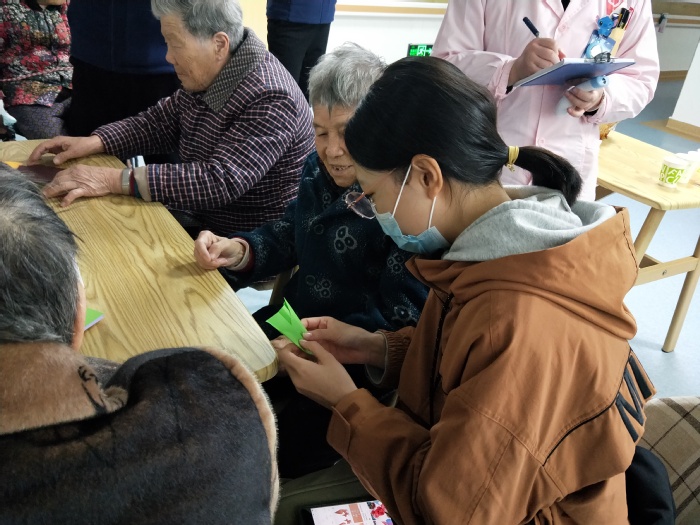 下午两点,志愿者们前往薛家爱心老年公寓,从敬老院经理处了解情况过后,慰问活动正式展开。志愿者们拿出事先准备好的水果送给老人们品尝,还为他们打扫房间卫生,推着轮椅陪腿脚不便的老人散步,与老人聊天,教他们玩折纸游戏等。大家用爱心和行动给老人们送去了温暖和欢笑,收到在场家属和工作人员的一致好评。