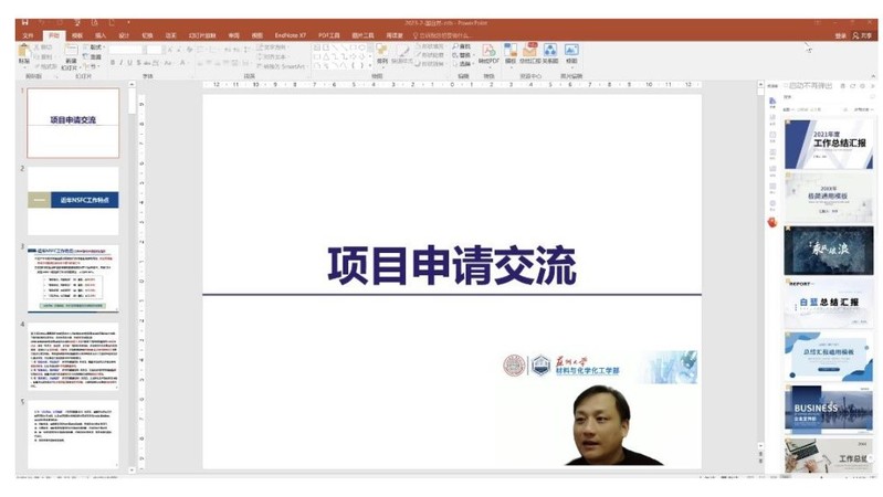 张正彪教授从2023年度国家自然科学基金委工作特点、申请书评审和撰写的心得体会三方面进行了介绍,并与参会教师进行了交流和指导,针对具体问题进行了解答。最后,张正彪教授鼓励青年教师增强信心、不断完善,争取在本年度基金申报工作中取得好成绩。