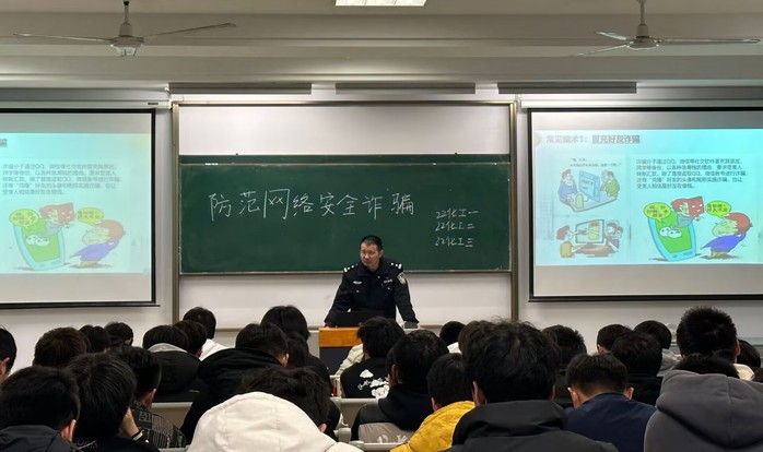 为深入开展校园防诈宣传,3月22日晚,DB真人旗舰22级全体员工在天枢楼参加防范电信网络诈骗教育宣讲会。