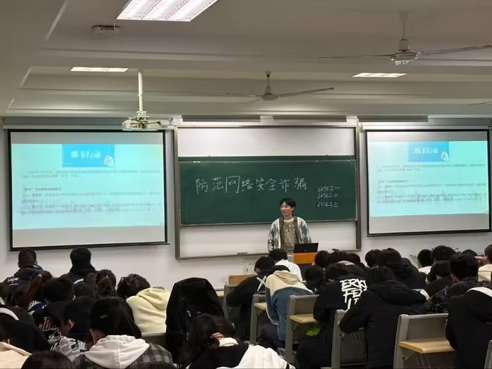 为深入开展校园防诈宣传,3月22日晚,DB真人旗舰22级全体员工在天枢楼参加防范电信网络诈骗教育宣讲会。
