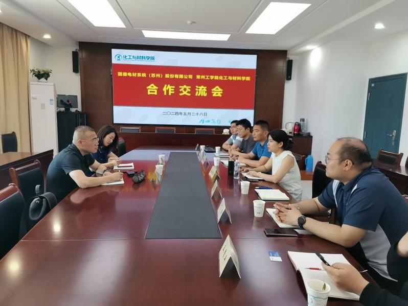5月28日下午,固德电材系统(苏州)有限公司董事长朱国来、人事经理张燕萍一行来公司洽谈合作事宜。DB真人旗舰副经理魏雪姣与朱国来一行开展座谈,畅聊人才培养、科研合作、员工实习及就业等相关话题。相关系部主任及专业教师参与座谈活动。