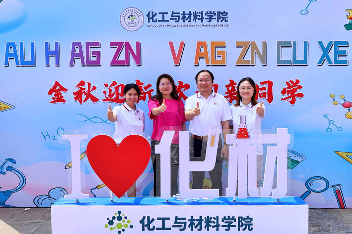 报到期间,辅导员、班主任以及员工志愿者们密切协同、精心筹备。交通指引、行李搬运、宿舍安置、解疑答惑、扫码注册、开设家庭经济困难员工“绿色通道”等等,在志愿者们的引导和协助下,新生有序高效地完成了各项入学手续,家长们也充分感受到了公司大家庭的热情和温暖。迎新现场,新生和家长们在印有 “Au H Ag Zn, V Ag Zn Cu Xe”(金秋迎新 欢迎新同学)的独具化材特色的展板前合影留念,从此在化材公司开启全新征程。