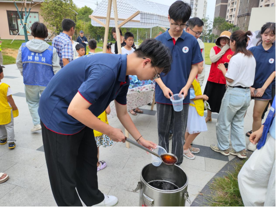 尽管天气炎热,但志愿者和小朋友们依旧活力满满地手提酸梅汤,将这份清凉与关怀亲手送到一线户外工作人员的手中。大家纷纷对志愿者们表示感谢,一份份酸梅汤如同夏日的微风,轻轻吹散了劳动者们的疲惫与炎热。
