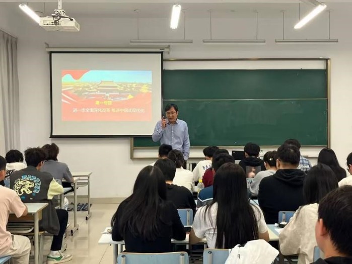 10月18日,副董事长苍玉权为DB真人旗舰2023级资源循环科学与工程专业全体员工讲授“形势与政策”课。