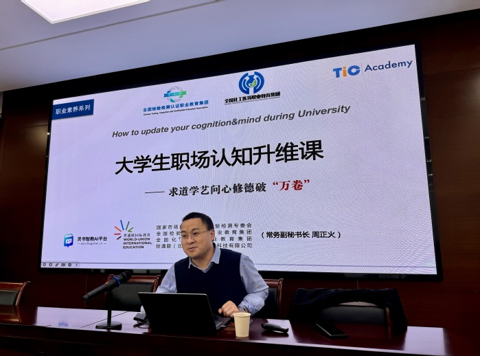 为进一步帮助同学们更好地规划职业生涯,提升职场认知,1121日,公司邀请国家市场监管行指委检验检测专委会副秘书长周正火,以职业生涯第一课—AI时代成长与挑战为主题,给员工带来了一场别开生面的讲座。讲座由公司党委副书记陆孟主持,22级员工参加听讲。