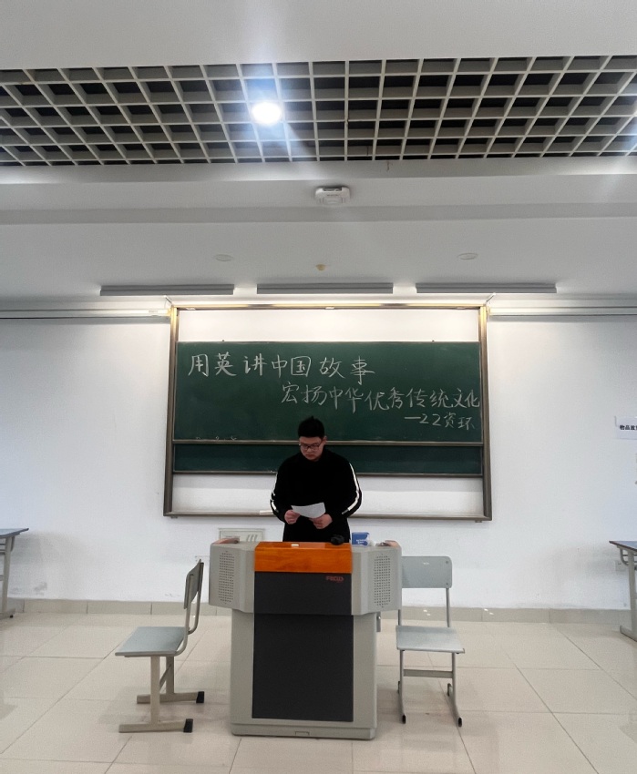 活动伊始,团支部书记强调英语不仅是国际通用语言,更是连接中国与世界的桥梁。用英语讲好中国故事,是新时代青年传承文化根脉、展现民族精神的重要使命。在故事分享环节,同学们依次登台,以流利的英语讲述舞狮、传统美食、汉服等文化主题,并辅以PPT、音乐等多媒体素材,生动呈现了中华文化的博大精深。同学们的表现不仅体现了英语表达能力,更展现了他们对文化内涵的深刻理解。