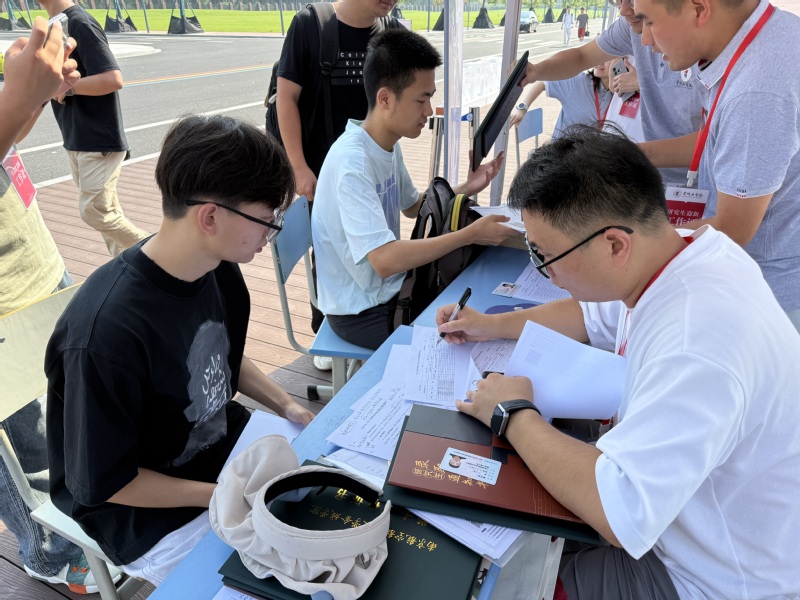 迎新现场,公司党委书记储云峰,副经理孔宪强、李健男,研工秘书冯坤与招生志愿者早早到场等候,协助新生办理入学手续、搬运行李、熟悉校园环境,并为其发放了定制帆布包、卡套和钥匙扣等公司专属文创礼包,提升新生的归属感与认同感。