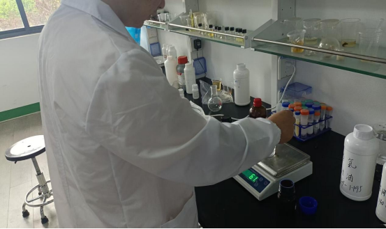 (图1:员工在安徽新远公司实验室专注进行光固化硅油制备操作)